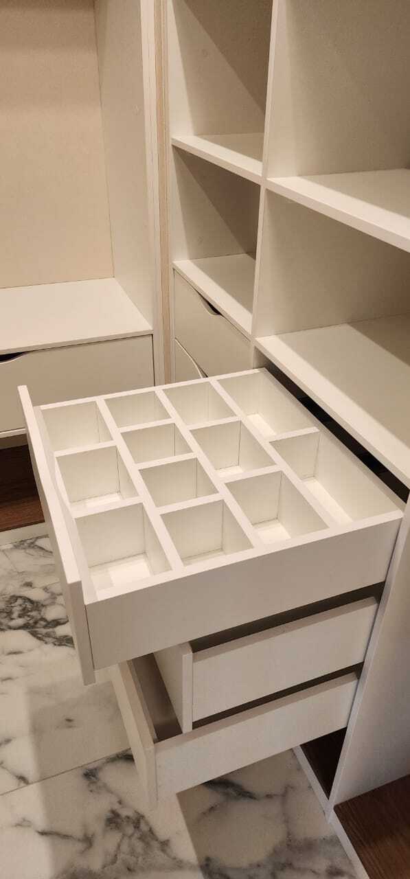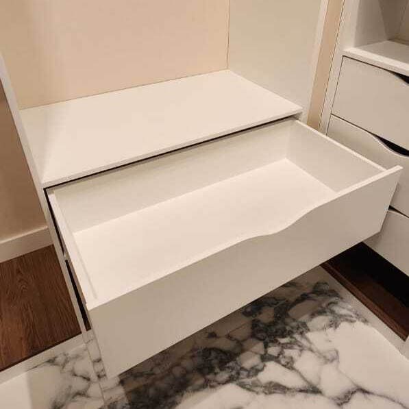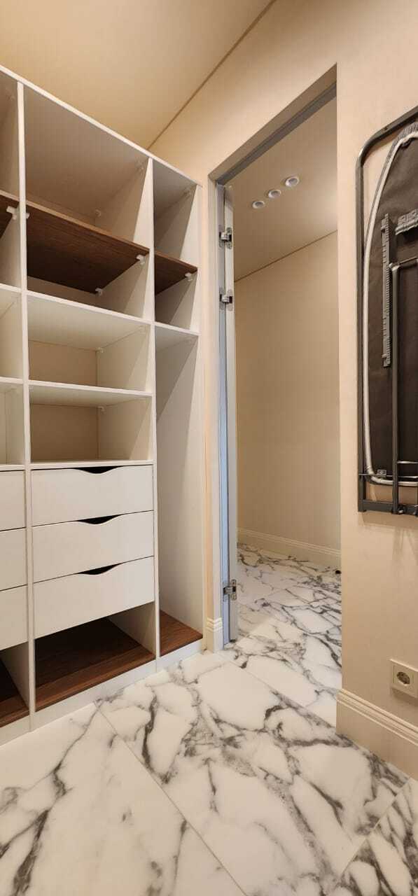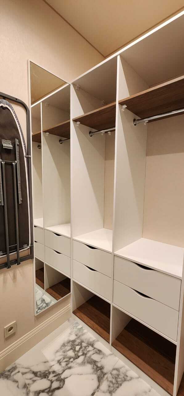 Гардеробная комната сделана из ЛДСП Белый кашемир Egger;