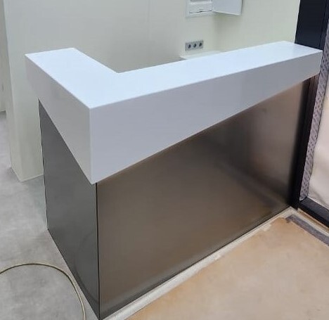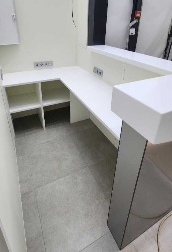 Столешница сделана из ламинированной плиты цвета Серый Асфальт U732 st9, толщина столешницы 40мм