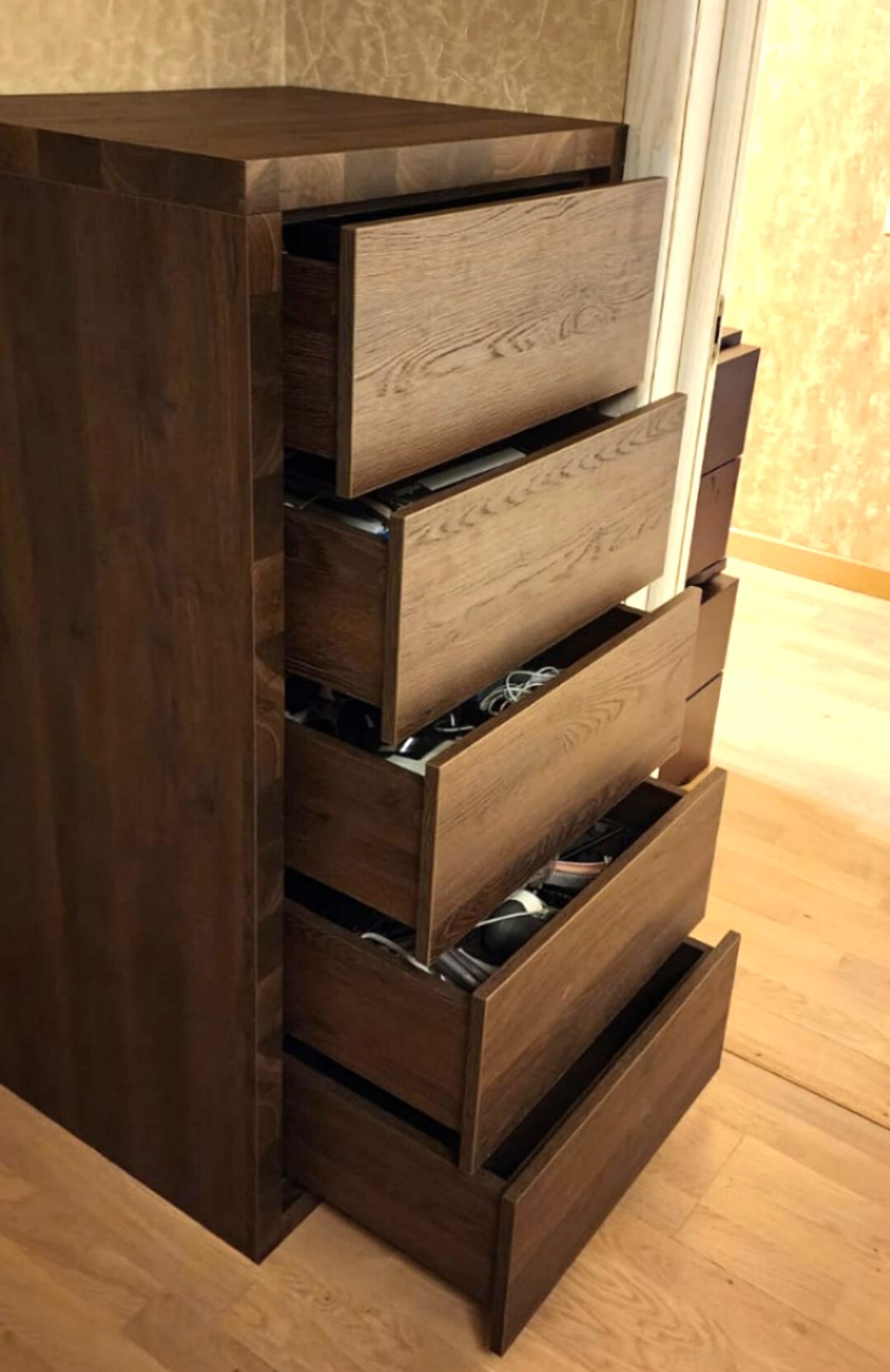 каркас и фасады комода сделан из ЛДСП серого цвета