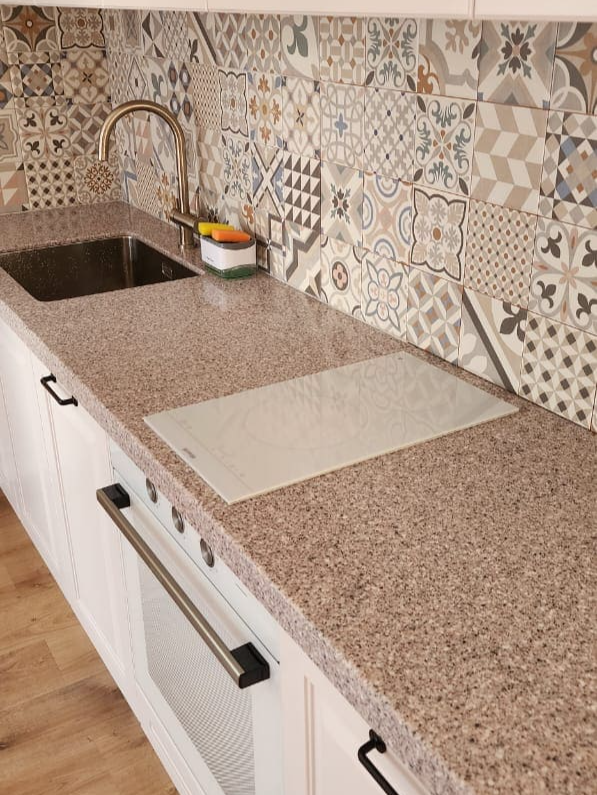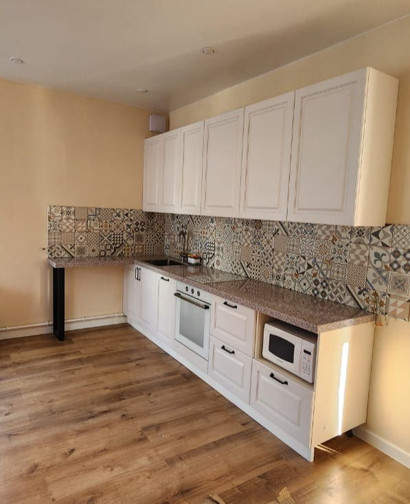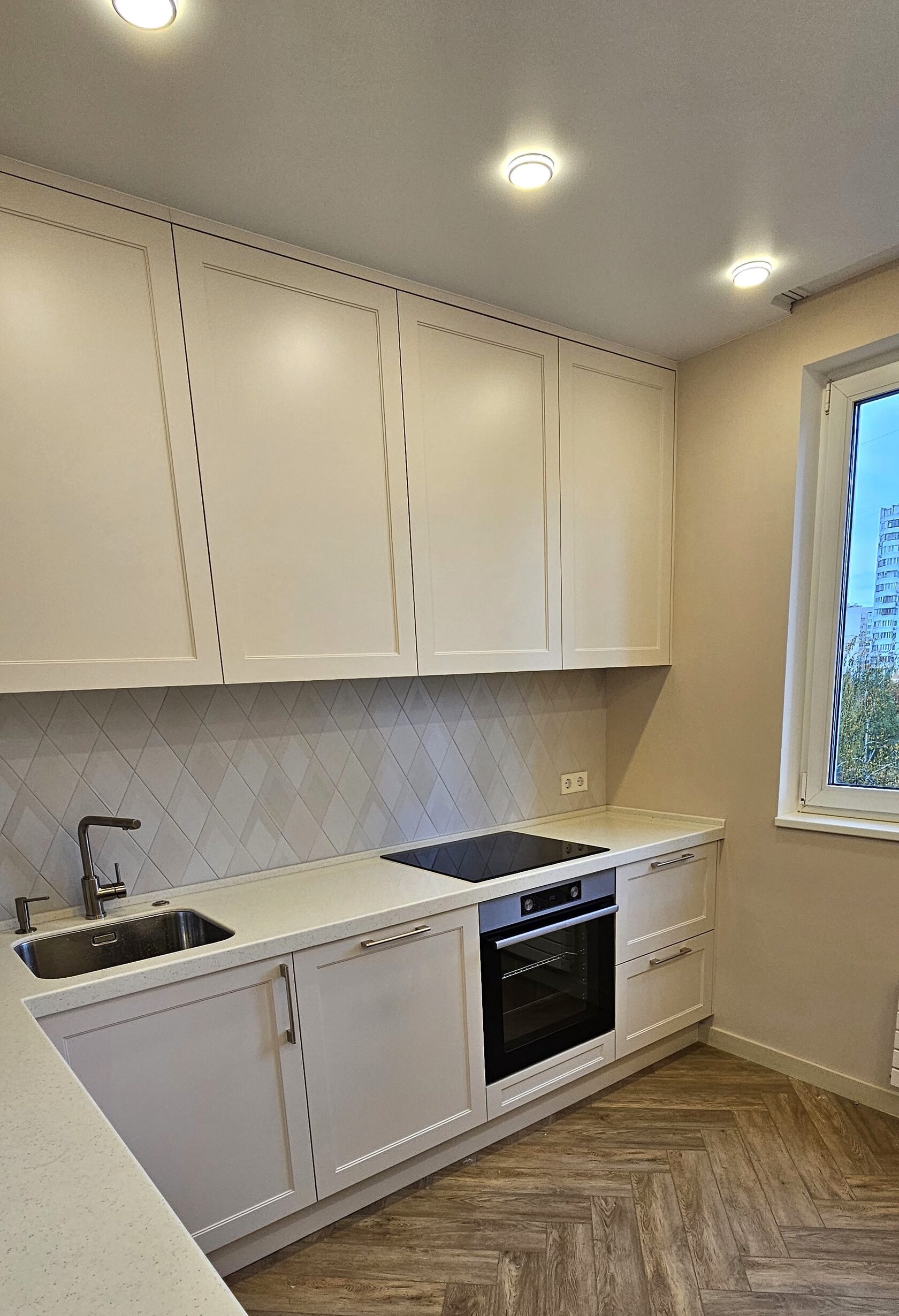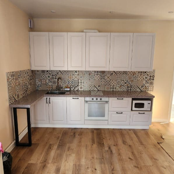 Кухня в краске, столешница и стеновая панель искусственный камень