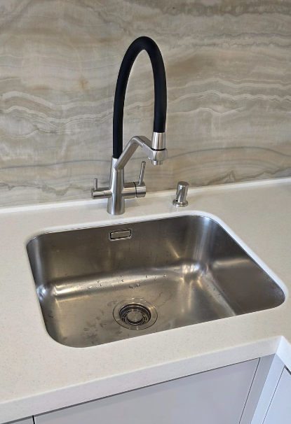 Столешница и стеновая панель из искусственного камня;