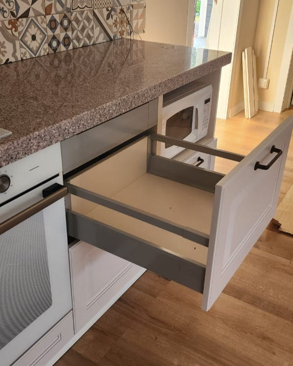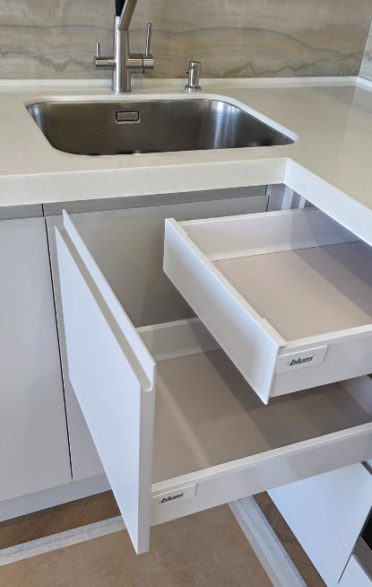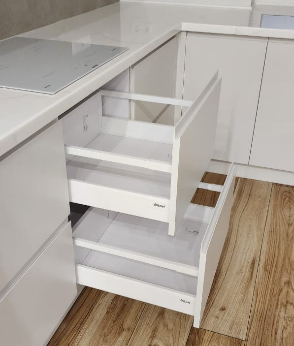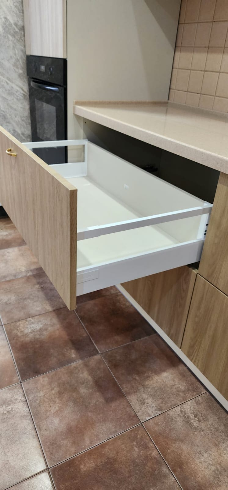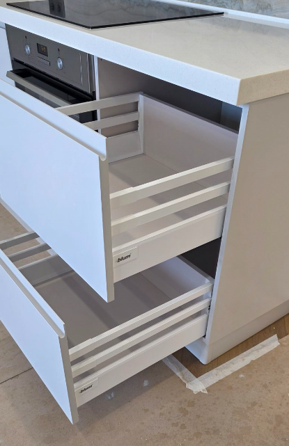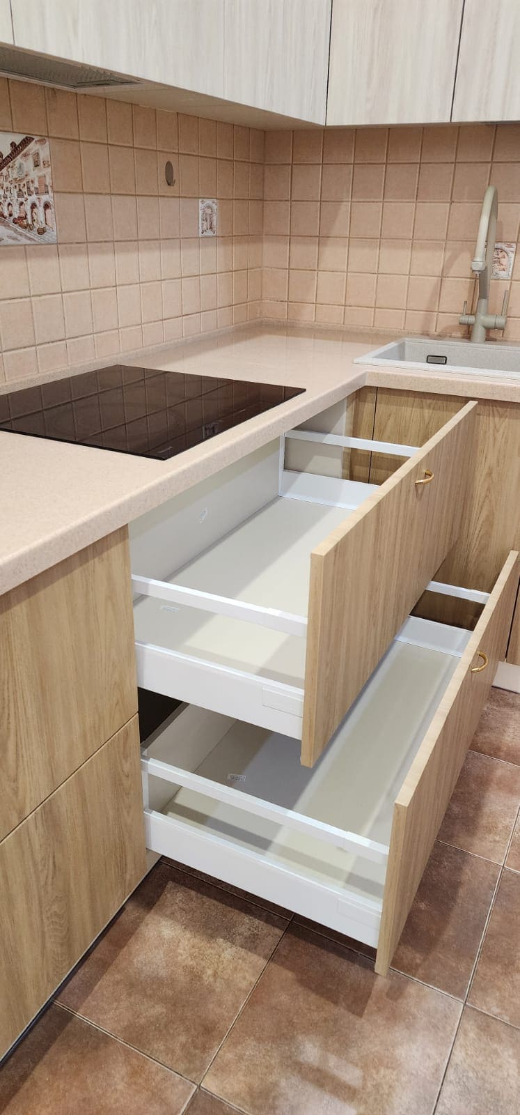 На верхних фасадах поставлены подъемные механизмы Blum.