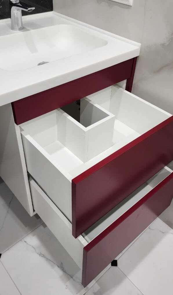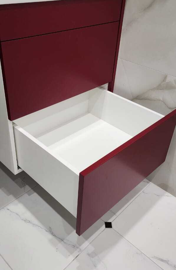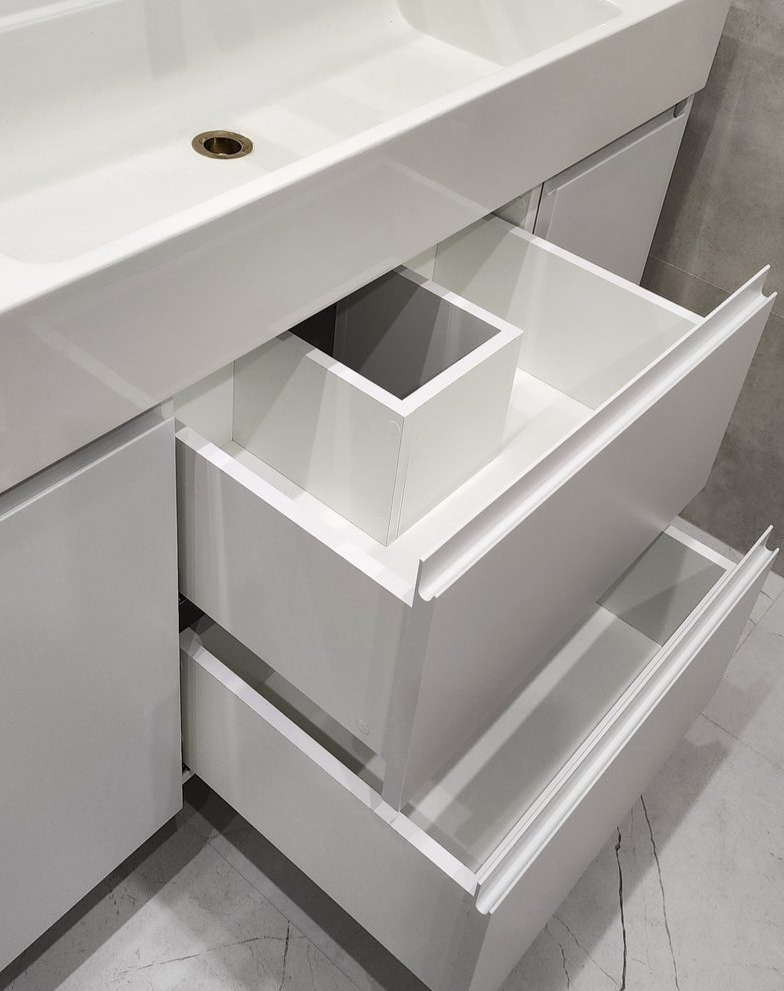 Тумба подвесная под умывальник с выдвижными ящиками, фасады эмаль NCS S 1500-N с интегрированной ручкой