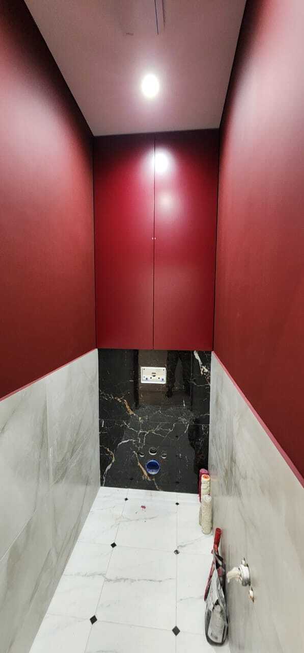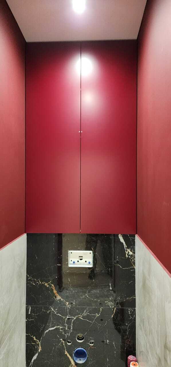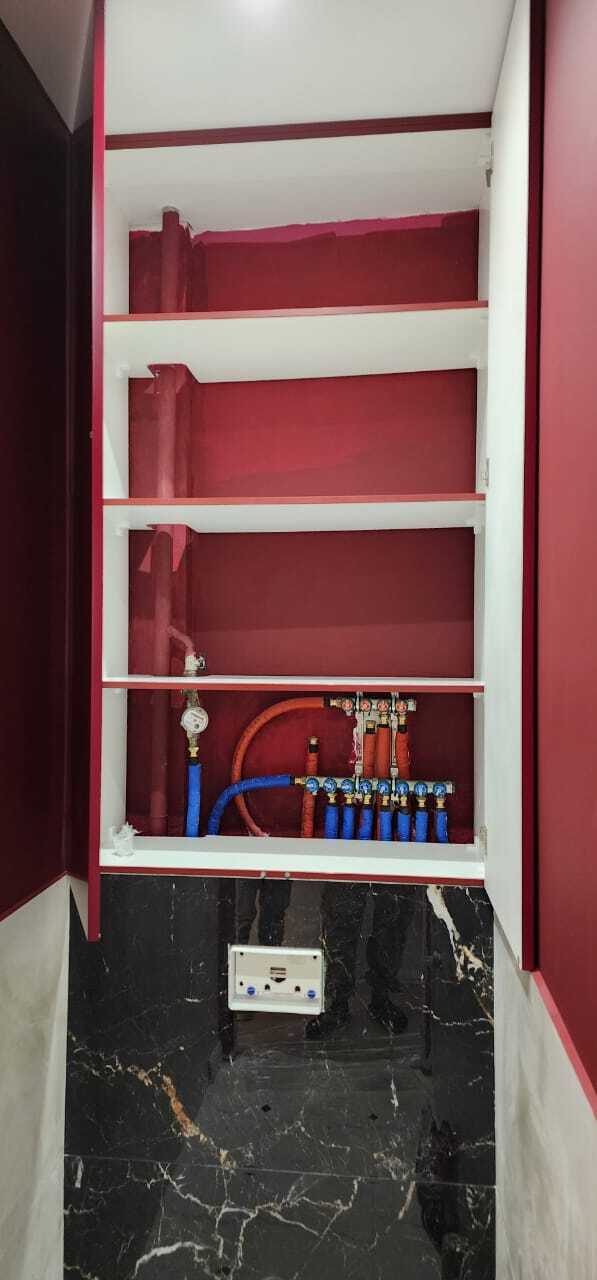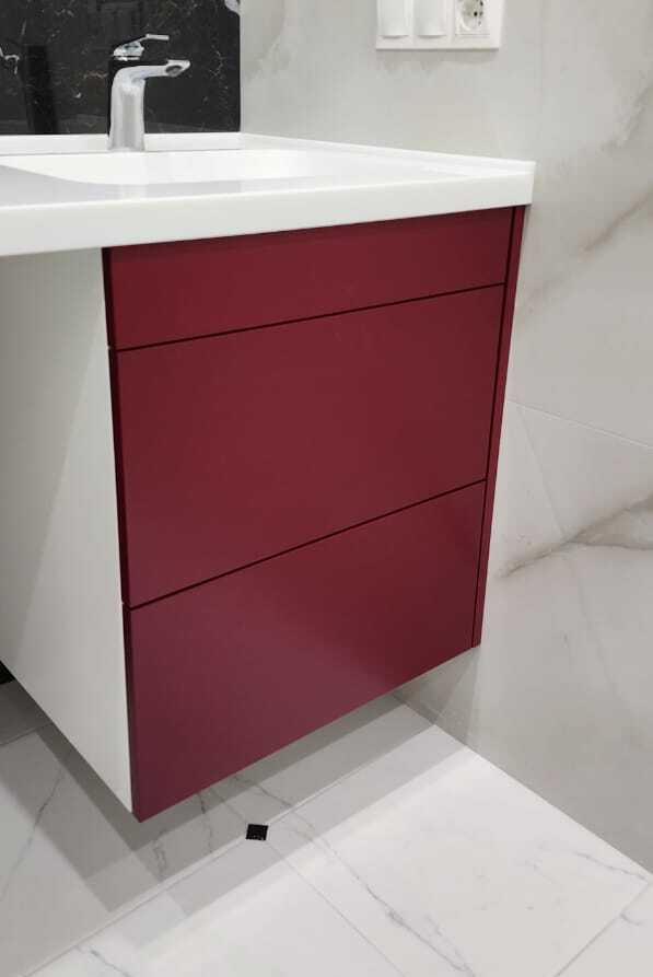 Шкаф встроенный над инсталляцией, фасады эмаль матовая RAL 3004 (purple red)