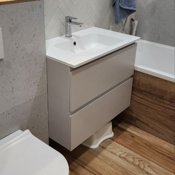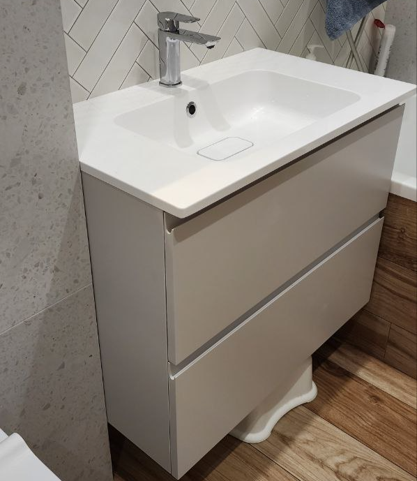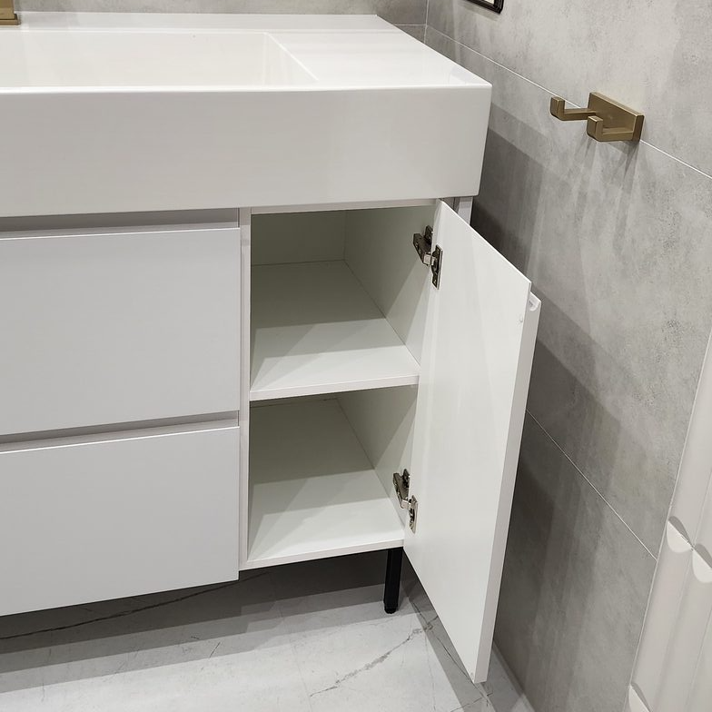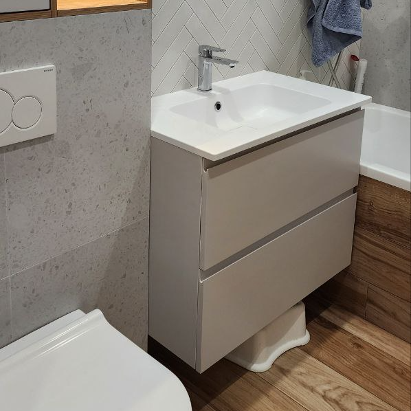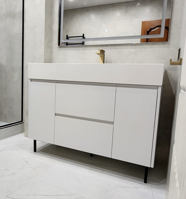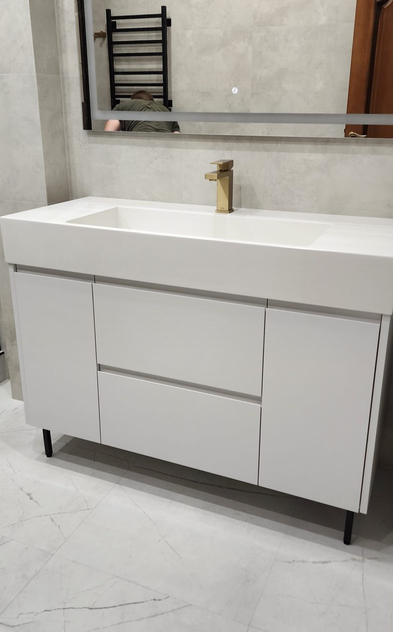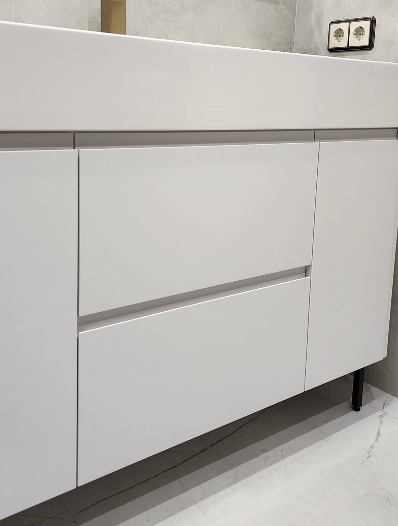 Тумба в ванную, ЛДСП белый влагостойкий, фасады эмаль NCS S 1000N с интегрированной ручкой
