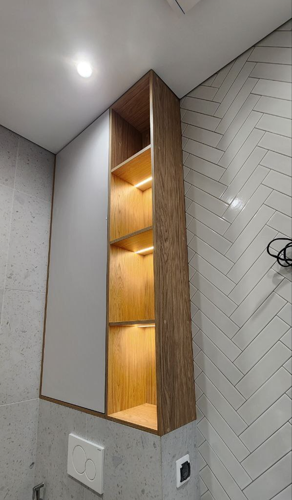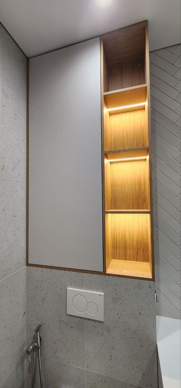 Полка закрытая в нише в ванной комнате