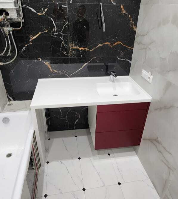 Столешница искусственный камень, мойка вклеенная в столешницу;